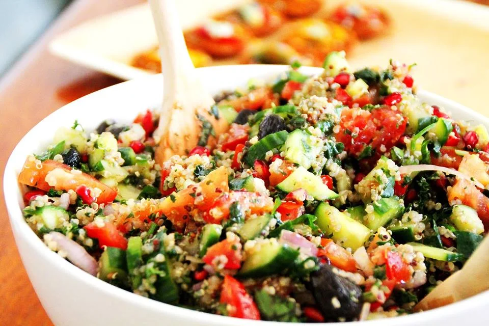 - Sirve la Ensalada Mediterránea de Quinoa en platos individuales y disfruta de esta explosión de sabores mediterráneos.